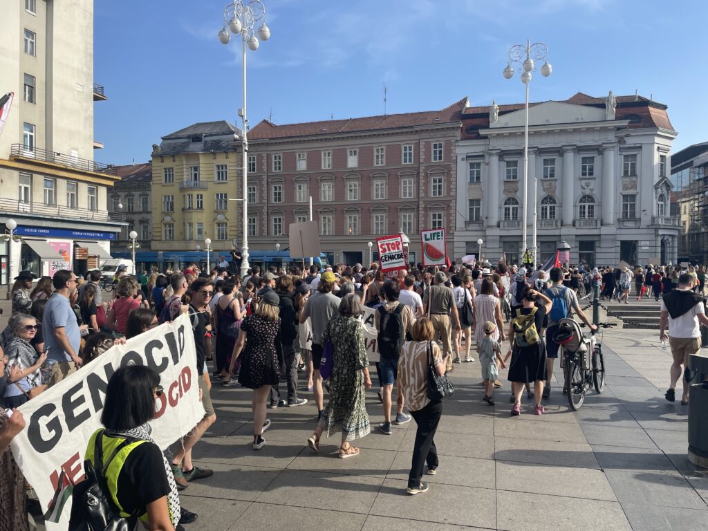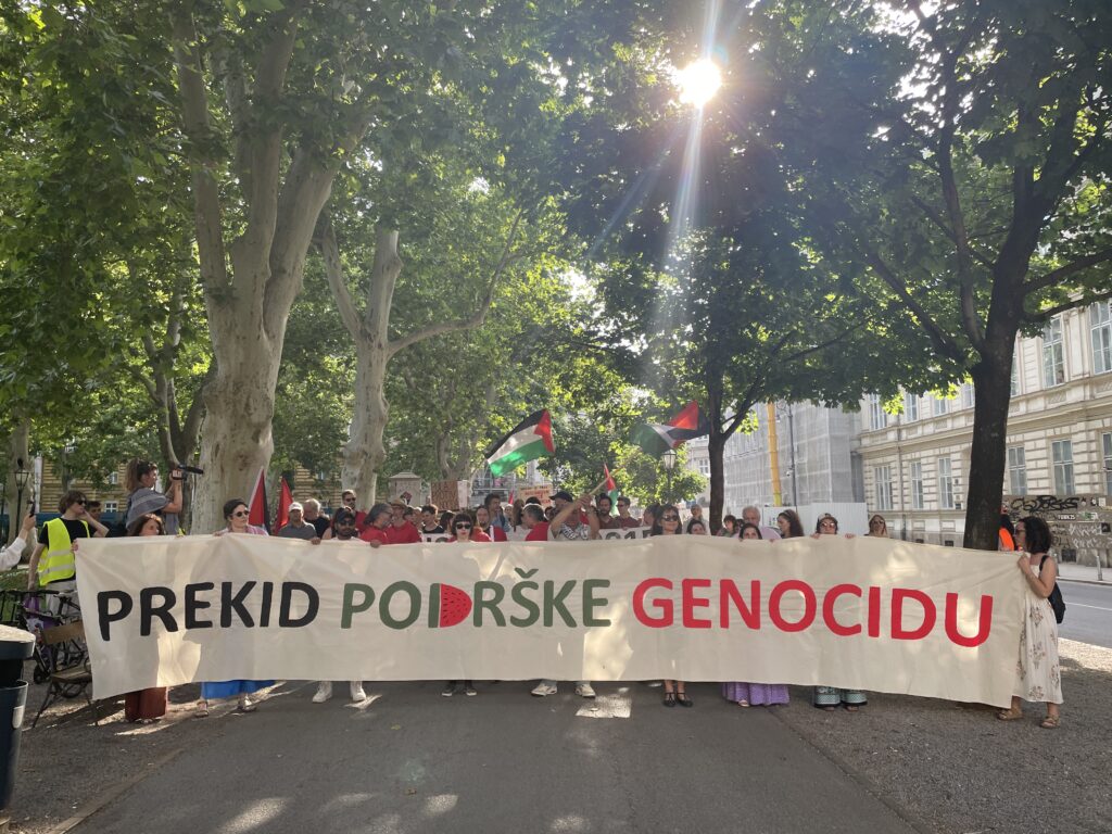 “Ne okreći glavu od genocida” 0 H-Alter 16. lipnja 2025. Foto galerija Marš za Palestinu, Zagreb, 15. lipnja. Zatražena je osuda genocida nad Palestincima u Gazi i prekid svih diplomatskih, političkih, kulturnih, akademskih i ekonomskih veza s Izraelom, uključujući potpuni embargo na oružje.