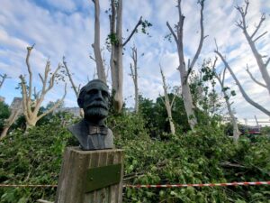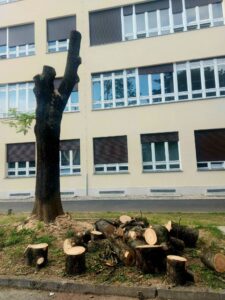Ova se stabla nalaze u dvorištu Fakulteta. Tko je i zašto naredio i odradio ovo iživljavanje, od Učiteljskog fakulteta do završetka ovog teksta još nismo dobili odgovor.