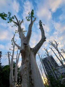 Platane u dvorištu Učiteljskog fakulteta u Zagrebu, na Savskoj cesti, u potpunosti su okljaštrene ovoga vikenda, kao i nekoliko drugih vrsta stabala. Građani još jednom masovno dijele fotografije na društvenim mrežama, samo jedan vikend nakon što je, nakon akcije građana, spriječeno orezivanje stabala u vrijeme gniježđenja ptica ispred Ministarstva pravosuđa, uprave i digitalne transformacije na Maksimirskoj 63. Masakriranjem stabala ispred Fakulteta uništeno je i najmanje jedno ptičje gnijezdo, koje su šokirani građani snimili na podu kao dokaz najmanje jednog razloga zašto se stabla ne orezuju u vrijeme listanja. Od većine su platana ostali tek stupovi glavnog debla. Neka druga stabla su popuno posječena, od jednog duda je ostao tek batrljak s kojeg visi tek jedna grana s nekoliko mladih plodova. Ptice uznemireno lete oko vrhova osakaćenih golih stabala.