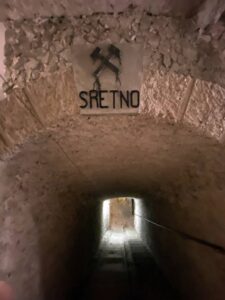 U istraživačkoj fazi projekta, koja se odvijala većinom u Puli, posjetili smo rudnik u Raši, Labin, rodnu kuću Martinuzzi te Narodni muzej Labin. Uz stalni postav koji pruža pregled bogate povijesti rudarstva, sadrži i repliku rudnika u dužini od 150 metara kojeg smo pomno istražili. Na ulazu u rudnik stajao je rudarski pozdrav Sretno!. Tako smo mi s Giuseppinom i Josephine, ruku pod ruku, uz nadu da ćemo „ugledati svjetlo dana pri izlasku iz crne rupe“ ili svjetliju, ljepšu budućnost, predstavu odlučile nazvati – Sretno!.