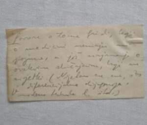 U spiritističkoj seansi, gotovo bez ičega, osim atmosfere, osobe su doživljavale (lažni) kontakt. Držeći pak u ruci mrtav papir sa živim riječima, dijelite nešto s tvorcem poruke. Tražite ispriku zbog uznemiravanja duše, iako niste vjernik. Priziv savjesti nemam komu uputiti, ne znam tko bi mi ga usvojio. Pokušavam biti ledeno hladan, ali u tomu ne uspijevam. Ovo pismo je svjedočanstvo vremena, za nekoga, a za mene se proteže na gotovo cijeli život velikog književnika. Koliko značenja, koliko varijanti osjećaja imaju u pismo podcrtane riječi: „…pa bih vas molio“: