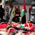 Pod vedrim nebom četvrtka 20.6. u 18 sati na Europskom se trgu u Zagrebu okuplja 250 ljudi, mahom u jarko crvenim majicama. Kȏd odijevanja otkriva povod okupljanju – performativni prosvjed Inicijative za slobodnu Palestinu. Performativan prvo, zato što je riječ o die-inu, formi protestnog performansa u kojem sudionice lijegajući na tlo simuliraju mrtve u čije ime se prosvjeduje, a drugo, zato što se ovakva forma otpora može činiti kao da cilj ima sama u sebi, u pukoj simbolici. Posebice u državi poput Hrvatske, jedne od četiriju članica EU koja je originalno glasala protiv prekida vatre u Gazi, a čija vlast još uvijek s besramnim komforom izražava potporu Izraelu. U tom se kontekstu može činiti da je ozbiljniji otpor, a ne performans, ovdje nasušno potreban, zbog čega mnogi domaći simpatizeri palestinskog pokreta ne osjećaju dužnost niti potrebu pojaviti se na takvim manifestacijama.