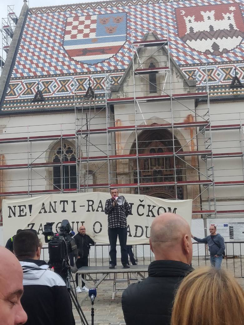 U petak u 17 sati na Markovom trgu okupilo se pedesetak članova inicijative Za radnički Zakon o radu, članova sindikata i onih koji ih podržavaju na prosvjedu protiv „antiradničkog Zakona o radu“ čije se prvo saborsko čitanje održalo dan ranije. Na Zakonu se radilo dvije godine, trebao bi stupiti na snagu početkom 2023., a tijekom javnog savjetovanja o izmjenama ljetos skupljeno je preko 770 komentara, od kojih je većina odbačeno. Trebao bi prepoznati rad na digitalnim platformama, rad o kuće i spriječiti neopravdano sklapanje ugovora na određeno, ali članovi inicijative i sindikata upozoravaju da je Zakon pun rupa i nedosljednosti koje će u praksi omogućavati još gori tretman radnika.