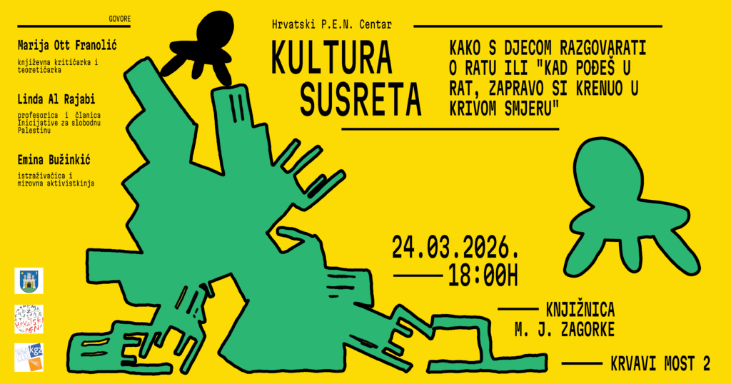 Hrvatski P.E.N. centar poziva na tribinu pod nazivom “Kako s djecom razgovarati o ratu”. Tribina će se odrđati u Knjižnici M. J. Zagorke ( rvavi most 2, Zagreb) u utorak, 24. ožujka u 18 sati.