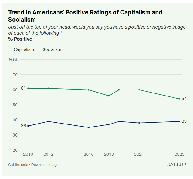 Činjenica je da, dok su američki građani percipirali da im kapitalizam pruža budućnost, socijalizam nije bio popularan: ljudi su ga poistovjećivali sa diktaturama, redovima za hranu, mračnim, zatvorenim društvima. Danas, međutim, imamo socijalističke gradonačelnike u New Yorku i Minneapolisu, i 66 posto građana, koji se politički identificiraju kao demokrati, favorizira socijalizam nasuprot kapitalizma, dok kapitalizmu, prema posljednjim Gallupovim anketama, drastično i ekspresno pada popularnost.
