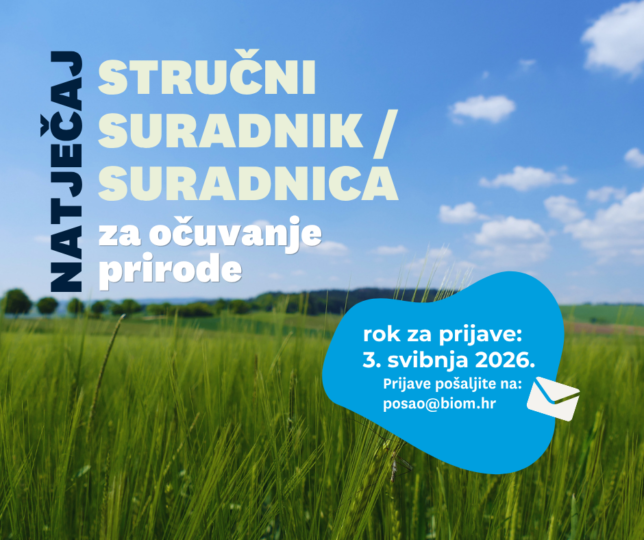 Udruga Biom traži motiviranu osobu za stručnog suradnika za zaštitu prirode, koja će se pridružiti timu i raditi samostalno i u suradnji na provedbi projekata udruge Biom.