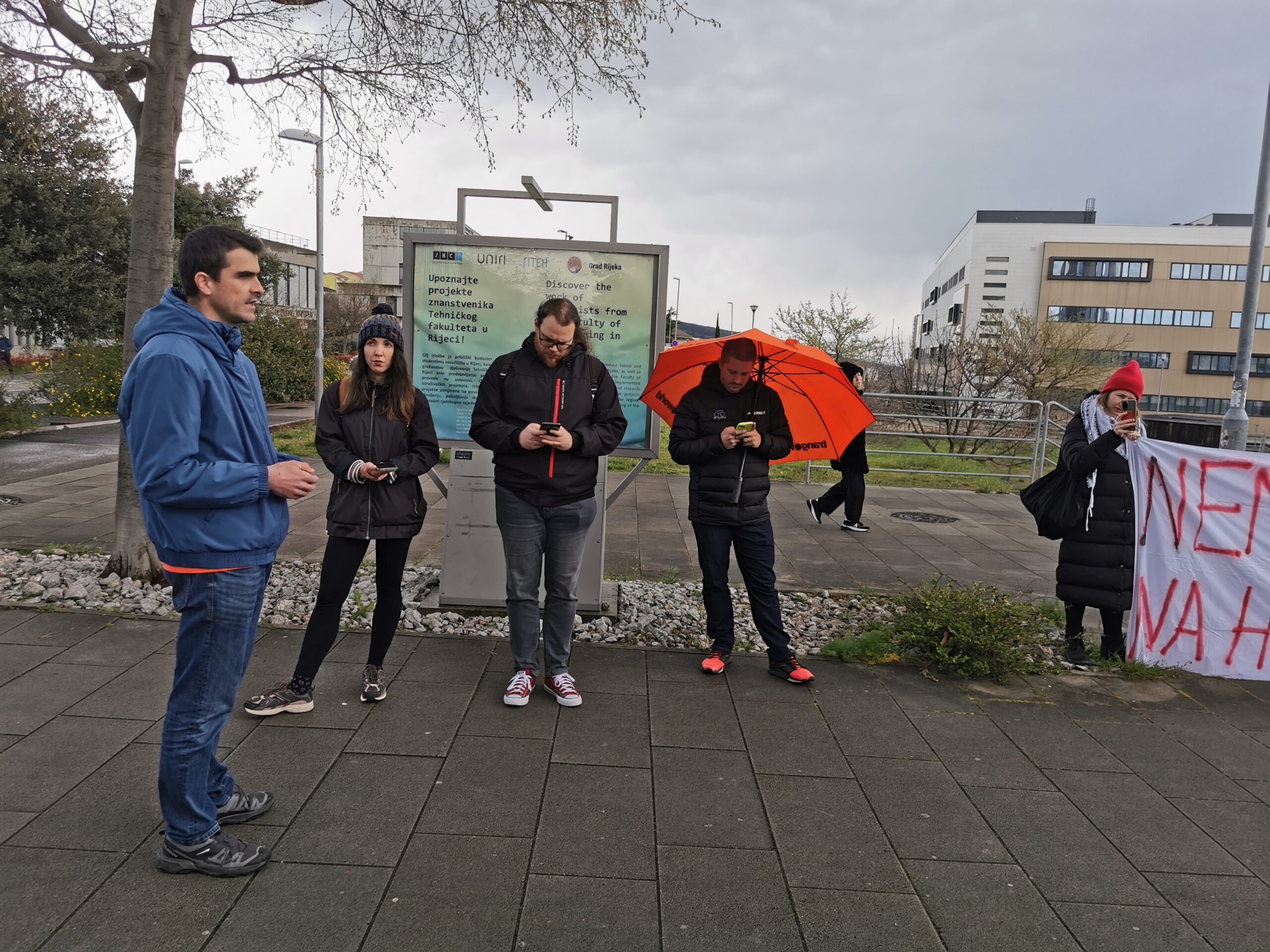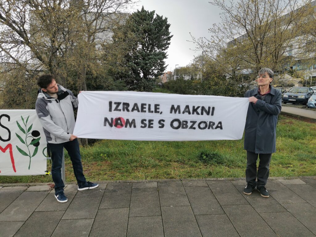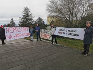 “Danas, u tjednu borbe protiv izraelskog aparthejda koji se ove godine globalno obilježava pod geslom ‘Palestina nas sve oslobađa’, ponovo i glasno u Rijeci pozivamo na prekid akademske suradnje s Izraelom. Zahtijevamo izbacivanje Izraela iz izdašno EU-financiranog programa Obzor – Izraele, makni nam se s Obzora!”, poručio je Izvor Rukavina na današnjem prosvjedu koji je održan na kampusu Sveučilišta u Rijeci.