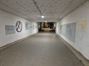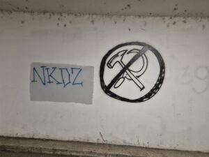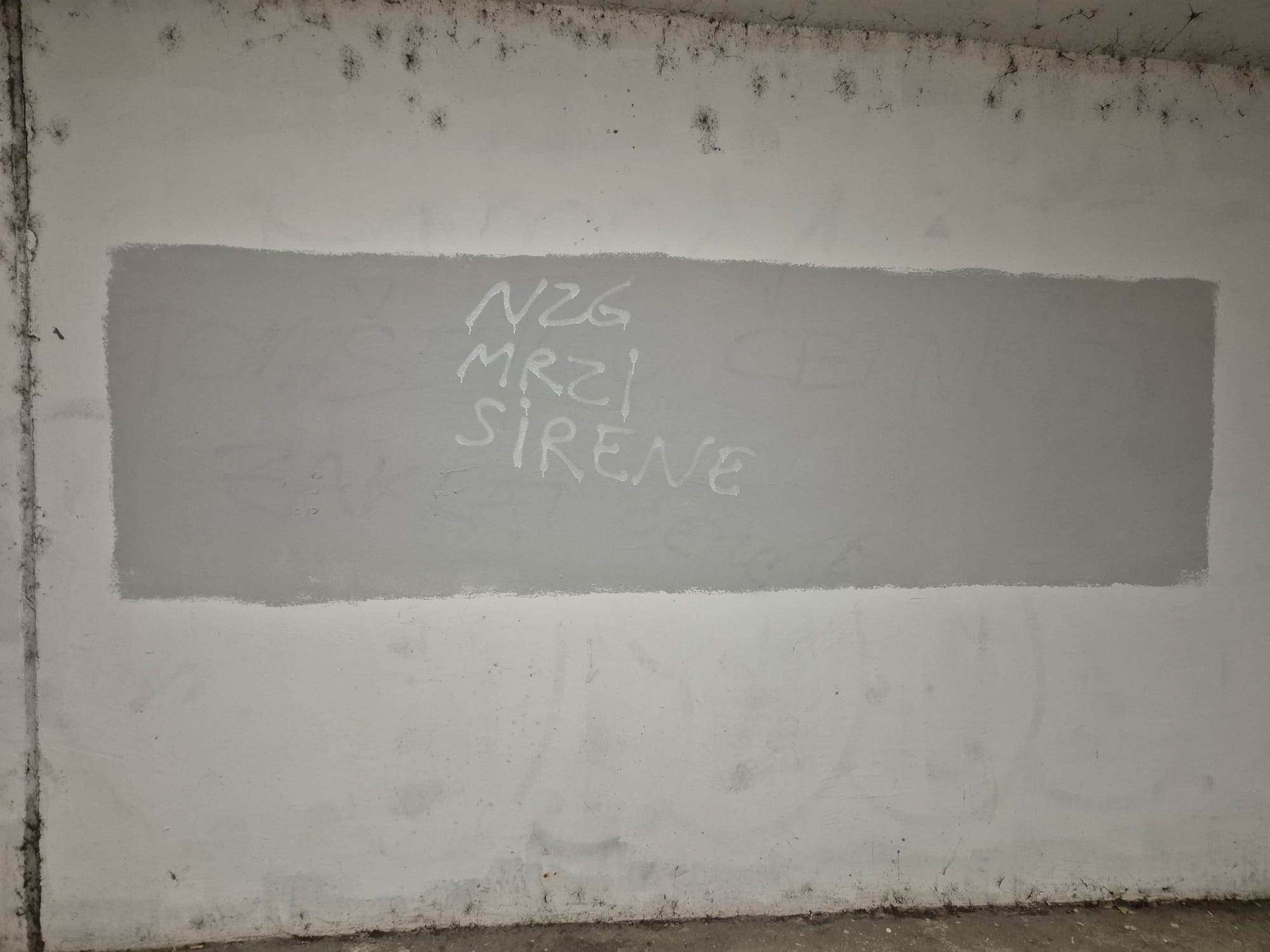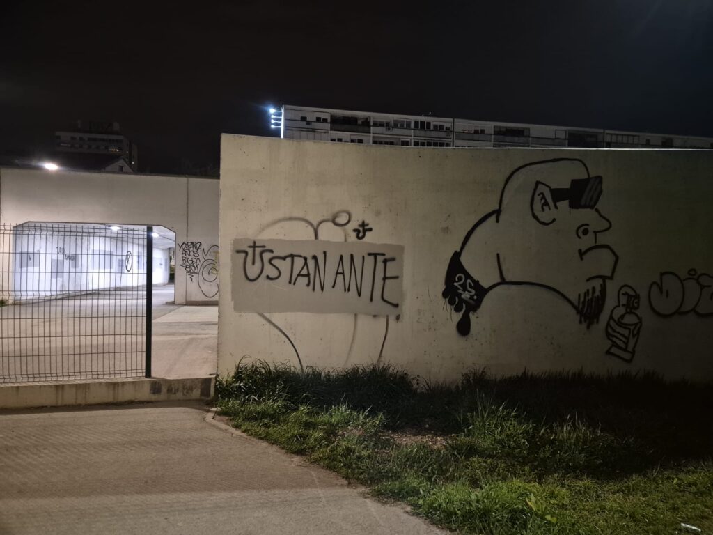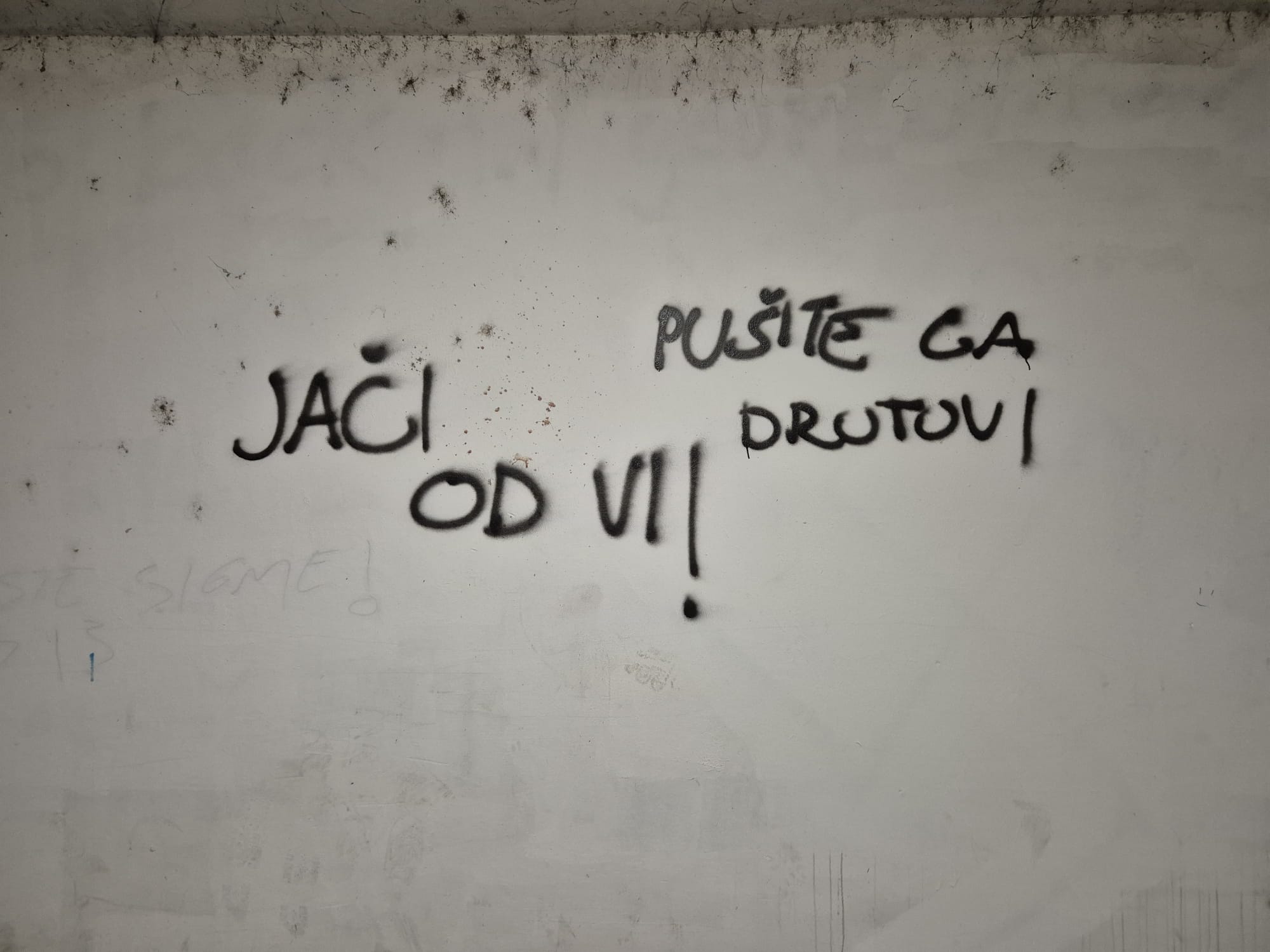 Uz ove s pozivom na ubojstvo, nalaze se i popratni grafiti s ušatim U (s križem).