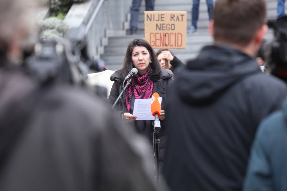 Odvjetnica Zrinka Golubić upozorila je da Zapad ne pruža zaštitu djeci i civilima koji su na rubu života. “Nad njima, Država Izrael i zapadne sile vrše najžešće ratne zločine i zločine genocida! Pojas Gaze i dalje je izložen genocidnom izgladnjivanju, napadima i ubijanju, genocidnom protjerivanju te ostalim genocidnim zločinima. Humanitarno pravo najstrože zabranjuje takvo vojno djelovanje koje jasno stremi napadu na civile, a u ovom slučaju, njihovom potpunom uništenju.”