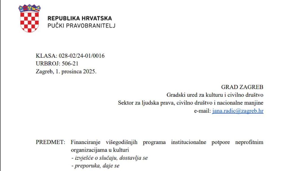 Usprkos tome, pučka pravobraniteljica je, dopisom od 1. prosinca 2025. koji je potpisala njezina zamjenica Dijana Kesonja, preporučila Gradu Zagrebu promjenu natječajnog kriterija u kategoriji najniže potpore na način da se smanji iznos minimalno ostvarenog prihoda kao uvjeta za prijavu.